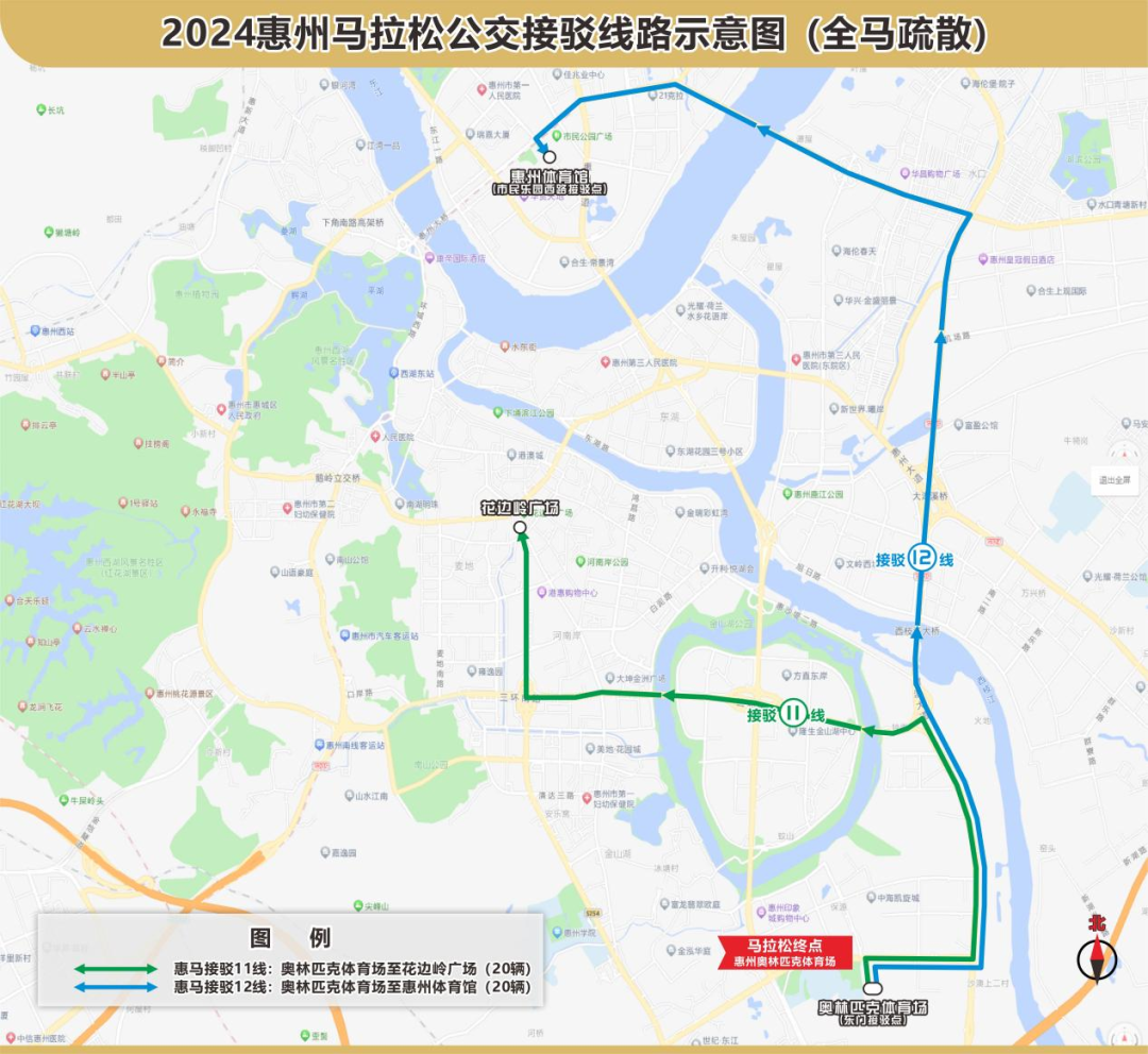 11號線接駁路線走向:奧林匹克體育場東門→四環(huán)南路→惠澳大道→三環(huán)南路→演達(dá)大道→花邊嶺廣場