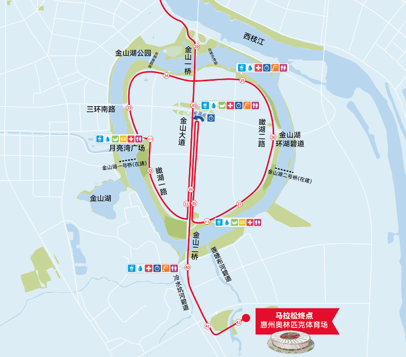具體公里數(shù)對(duì)應(yīng)位置可點(diǎn)擊馬拉松地圖查看