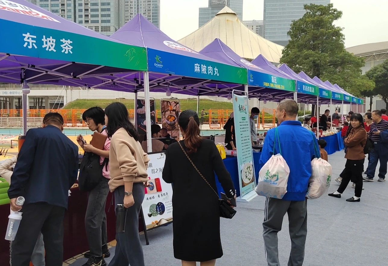 “沒想到惠州有這么多特色美食,味道很不錯。”來自湖南長沙的黃燦是一名運動愛好者,當天他領取參賽物資后,來到惠州非遺美食展區品嘗各色美食,還購買了牛奶、芝麻丸子等美食帶回家。
