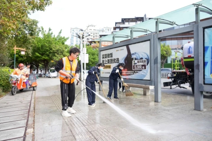 今年,惠州西湖2024年新春燈會即將回歸,如今景區門口亮相的兩條花燈“巨龍”,吸引了眾多市民游客拍照留念。為了能讓市民游客擁有更好的游玩體驗,橋西環衛所組織開展公共設施大清洗活動,環衛工人對環城西路等路段的人行道、公交車站、欄桿、果皮箱、路名牌等設施進行清洗除塵,并清理花池邊角污垢、細小垃圾。