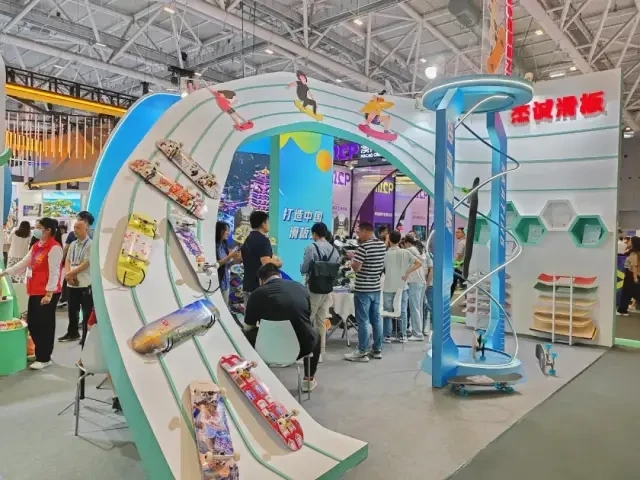走進(jìn)惠州館,以滑板賽道為創(chuàng)意設(shè)計(jì)的滑板互動(dòng)體驗(yàn)區(qū),備受觀眾歡迎,不少觀眾主動(dòng)踏上滑板,現(xiàn)場(chǎng)感受滑板運(yùn)動(dòng)之樂(lè)。