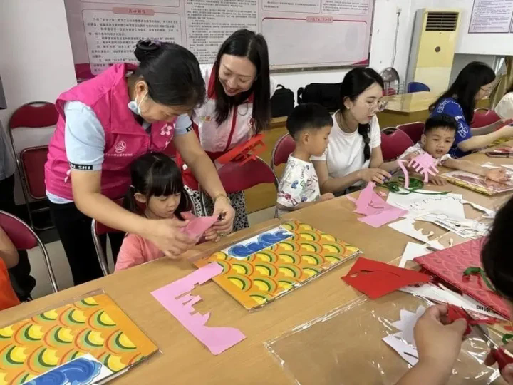 小朋友學剪紙做“龍舟”