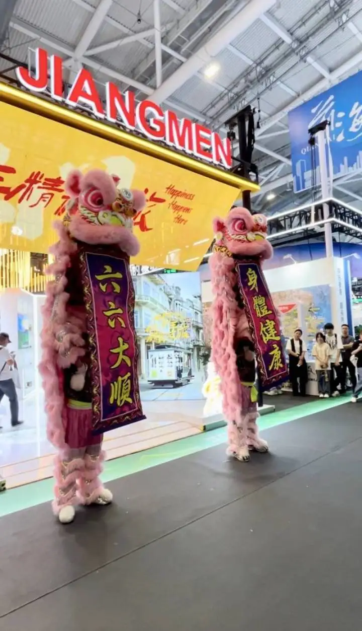 江門展區(qū)帶來傳統(tǒng)舞獅、武術(shù)、粵劇