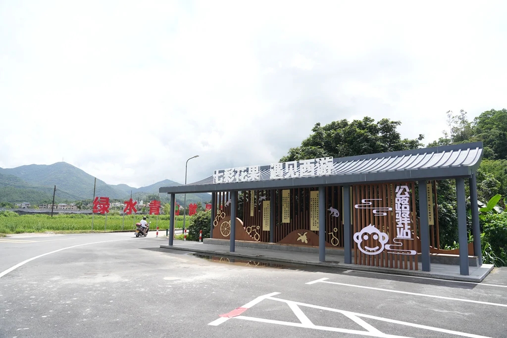 走進(jìn)新圩鎮(zhèn)花果村,映入眼簾的是平整寬敞的七彩花果路,路面鋪設(shè)瀝青,道路兩旁建了綠化竹籬笆,沿路設(shè)有公路驛站、服務(wù)停車(chē)區(qū)等。途經(jīng)村頭的工業(yè)區(qū)、花果村委會(huì)后,沿路是綠油油的水稻田,田邊寫(xiě)著“綠水青山就是金山銀山”“打造美好鄉(xiāng)村共建幸福家園”,路邊還有“七彩花果 遇見(jiàn)西游”的公路驛站。夾麻坑河起源于青山水庫(kù),蜿蜒穿過(guò)村莊,河中碧波蕩漾、流水潺潺,兩岸綠樹(shù)成蔭、郁郁蔥蔥,恰好印證了“綠水青山就是金山銀山”的生態(tài)理念。
