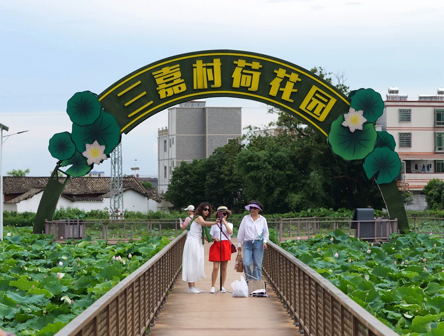 據悉,三嘉村是廣東省“百千萬工程”首批典型村。近年來,三嘉村以“荷”為媒,從發展特色產業、人居環境整治、文明實踐活動等多個方面入手,探索出“荷”美鄉村,花開富農的新路徑。