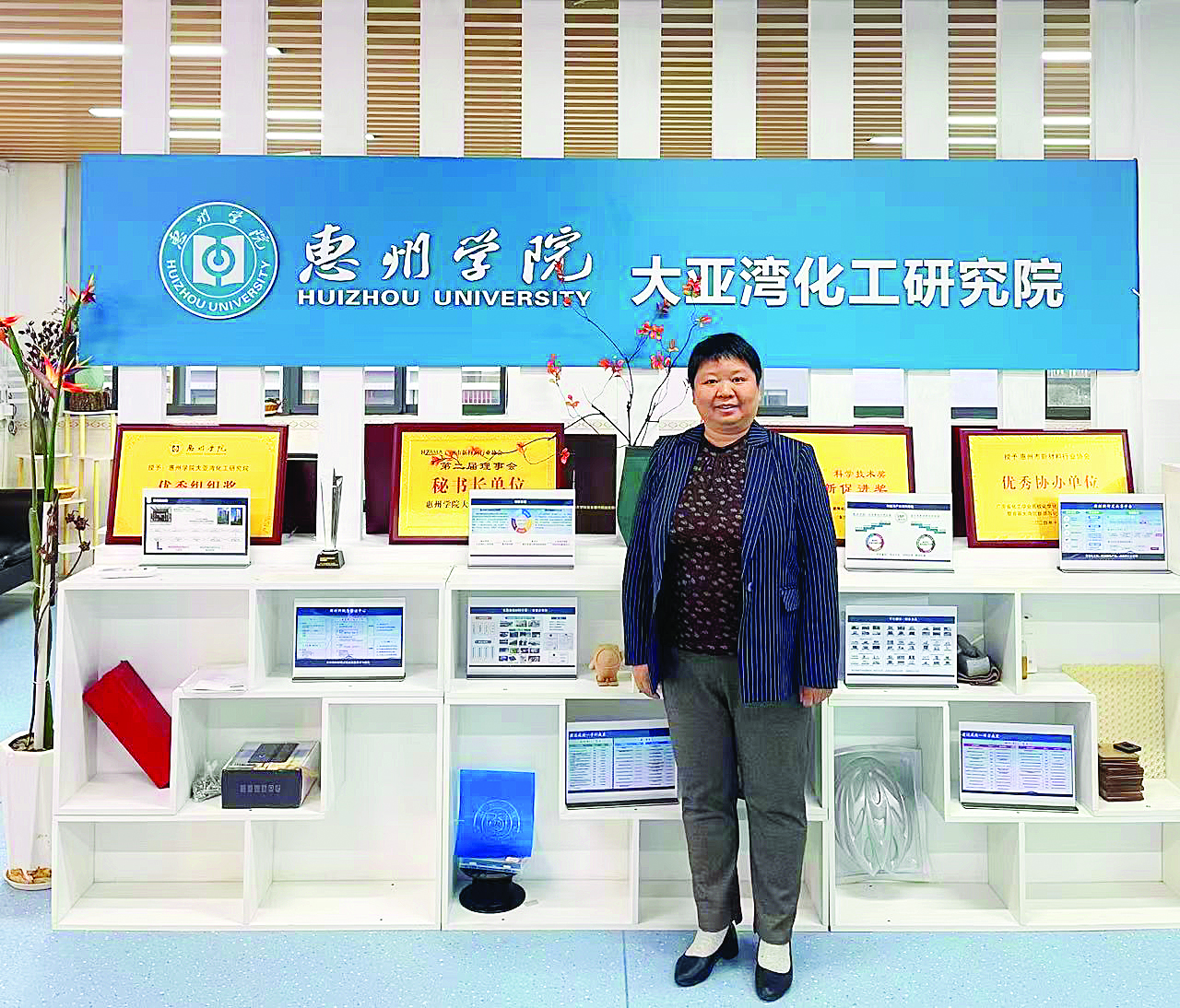 廣東省科技進步獎,市管拔尖人才,優秀提案證書……在惠州學院大亞灣化工研究院的一面榮譽墻上,掛滿了各種各樣的獎狀和證書,這些榮譽見證了市政協委員、惠州學院大亞灣化工研究院院長肖定書一路走來的努力和付出。