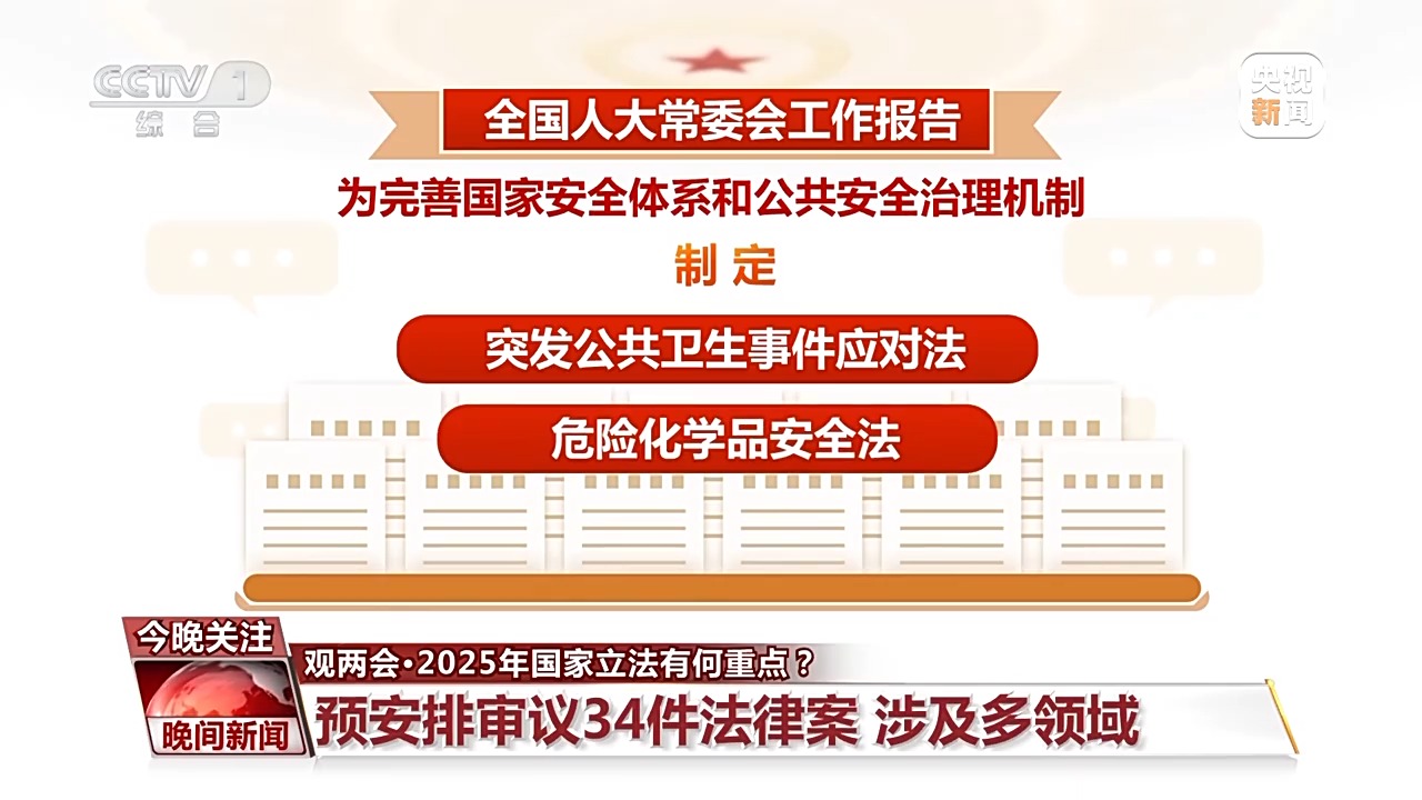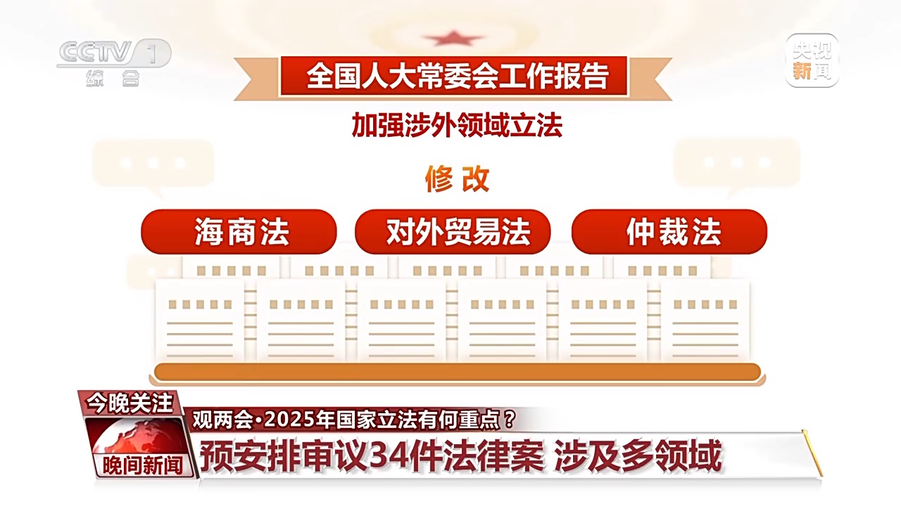 全國人大常委會(huì)工作報(bào)告顯示,2025年預(yù)安排審議34件法律案。