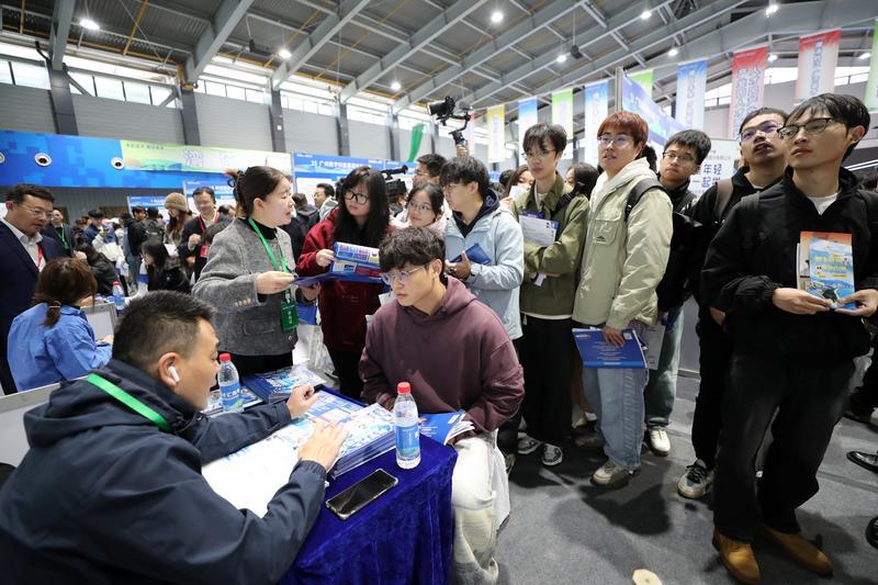 10月21日,“百萬英才匯南粵”2025年N城聯動秋季招聘活動(湖北站)在武漢大學舉行,吸引不少學生前來應聘和咨詢。 惠州日報記者楊建業 攝