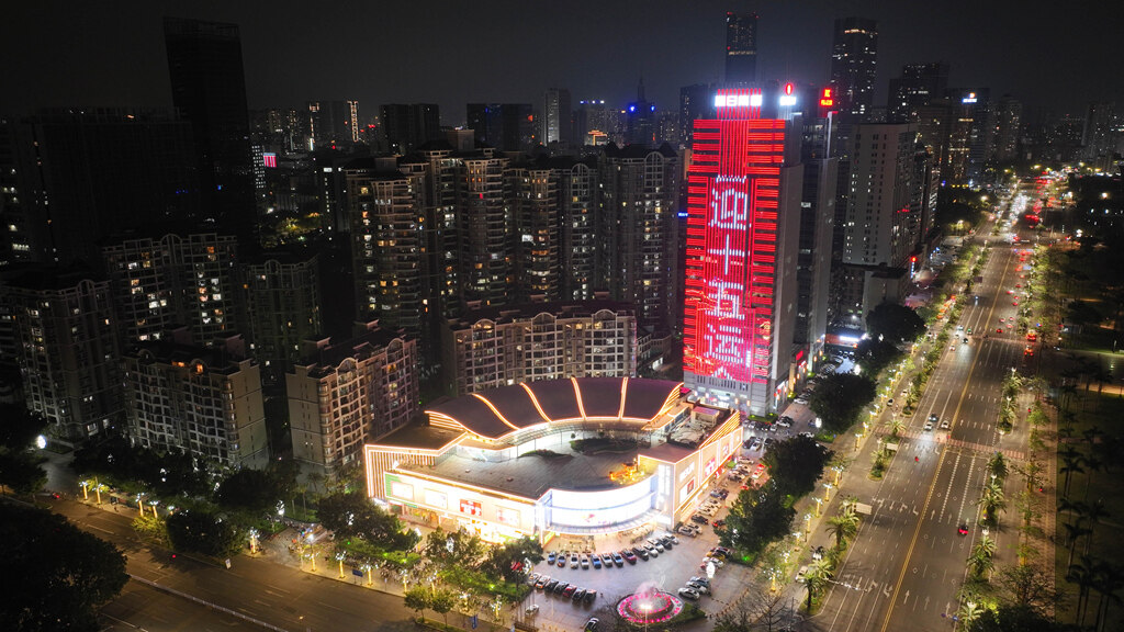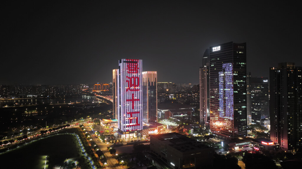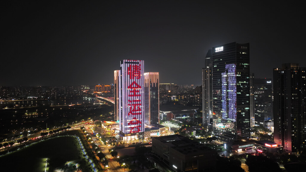 江北中海廣場亮燈為十五運會打call;葜萑請笥浾邚埶嚸 攝