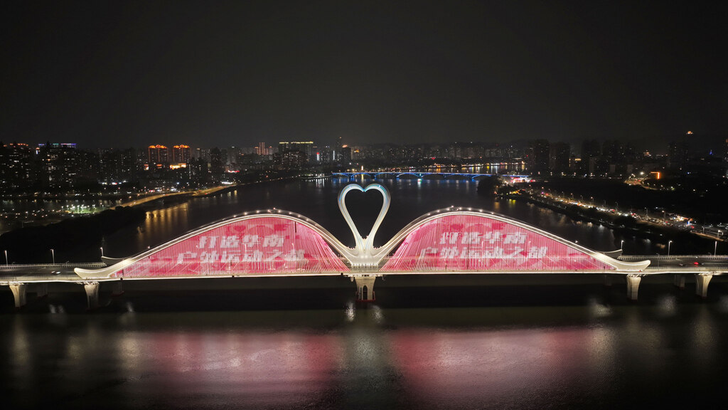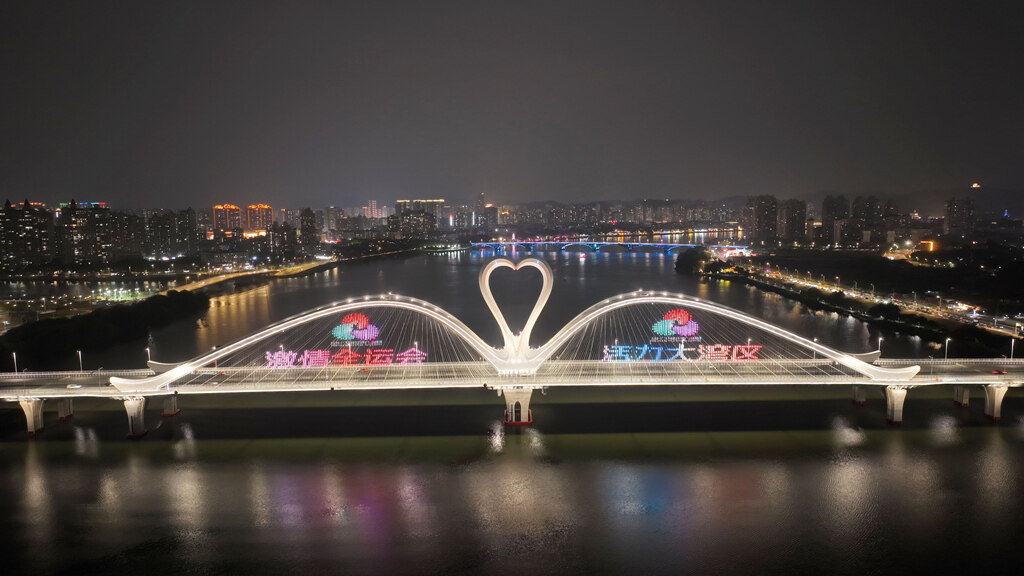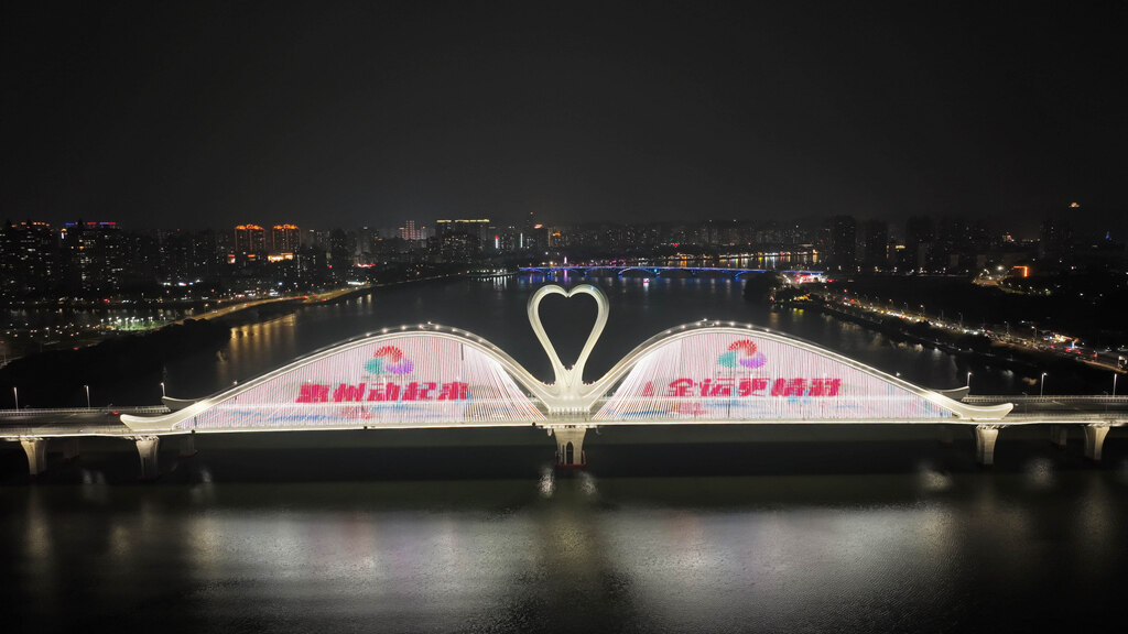 鵝城大橋燈光秀為十五運會打call;葜萑請笥浾邚埶嚸 攝