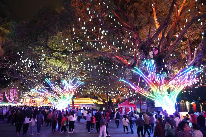 惠州西湖景區游人如織,或觀賞花燈,或拍照留念。本組圖片 惠州日報記者朱金贊 鐘暢新 攝
