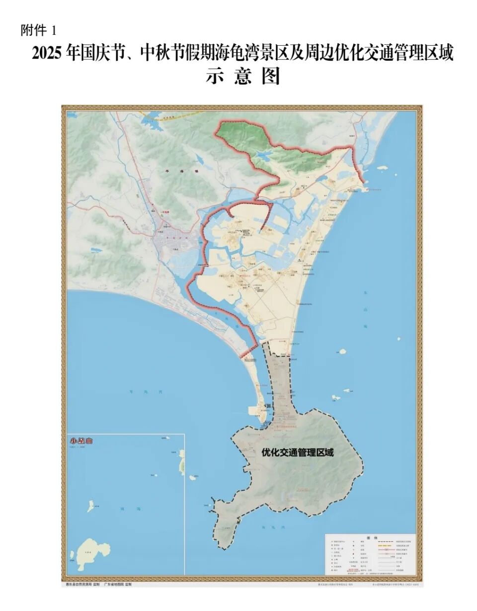 實施優化交通管理期間,7座及以下機動車進入海龜灣景區實行網上預約,預約成功后憑“通行碼”通過車輛識別點;非預約車輛集中停放在優化管理區域外5個停車場;港口大橋(即港口老橋)實行臨時交通管制,管制期間四輪及以上機動車繞行,摩托車、電動自行車、行人可正常通行。