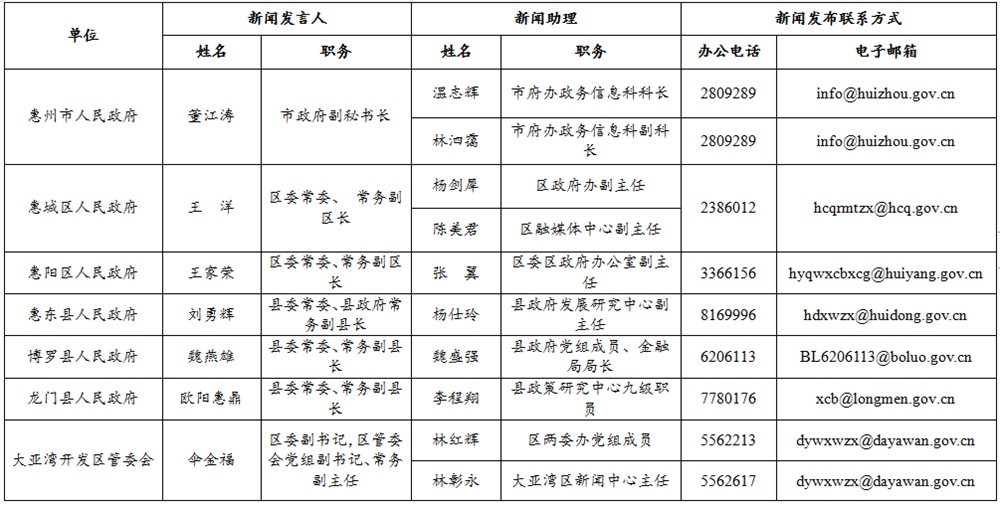 2023年惠州市政府新聞發(fā)言人和新聞助理名單