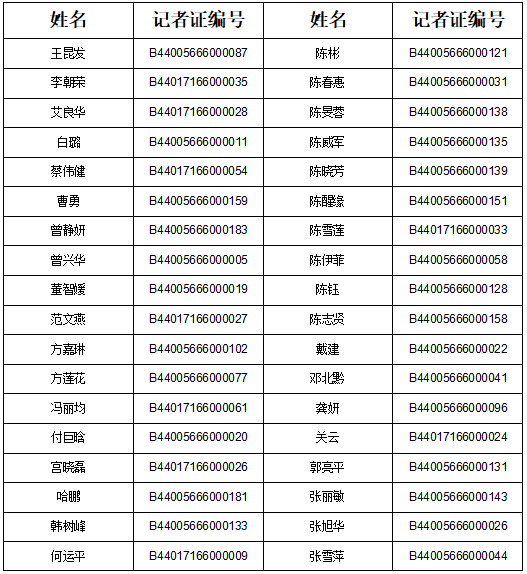 新聞記者證換證人員名單公示