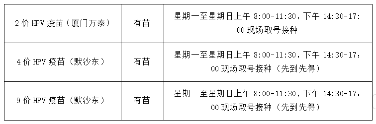 接種時間:周一至周六(上午8:00-11:00;下午2:30-5:00);節假日除外。