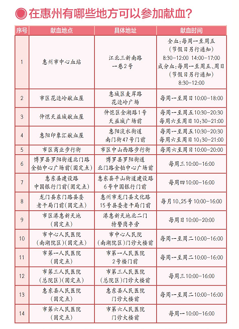 如有需要,也可以拔打電話:0752-2818708,惠州市中心血站將為您匹配最近的獻血點。