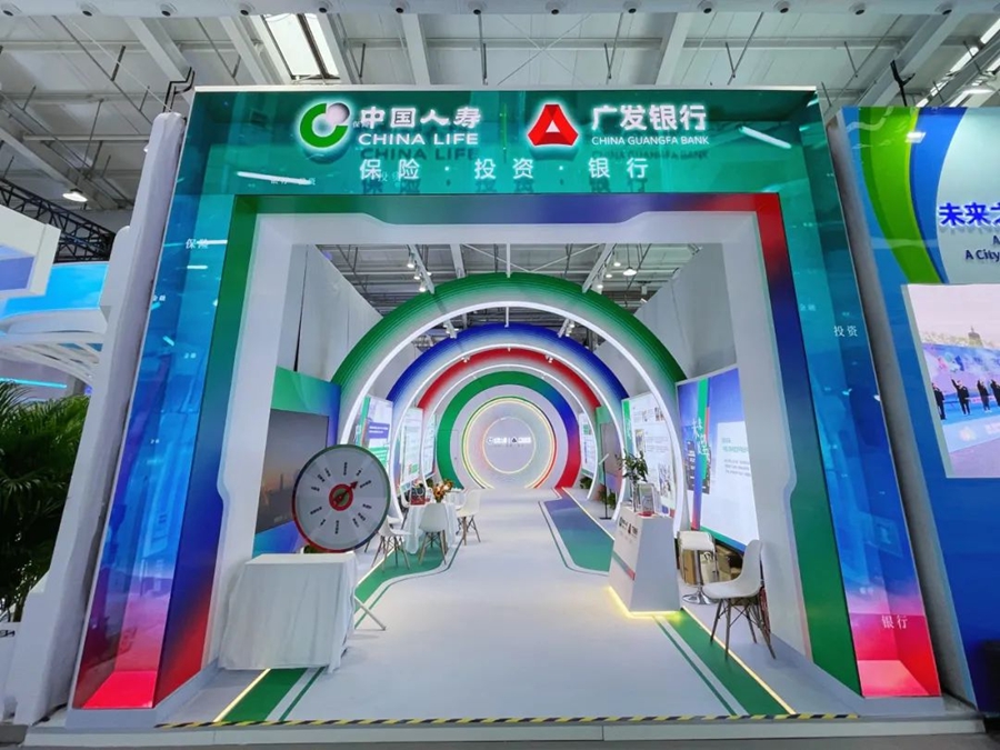中國人壽-廣發銀行聯合展位分為大國重器、大美神州、大愛為民三個篇章,吸引了觀眾紛紛駐足觀看。