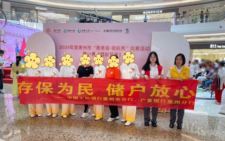 “惠幸福·銀齡秀”比賽熱火朝天,廣發銀行惠州分行成立存款保險宣傳青年志愿服務隊、存款保險黨員宣傳團,巧妙結合比賽場地需求,精心設置存款保險宣傳茶歇點、擺放存款保險政策宣傳易拉寶,并向參賽選手及現場觀眾派發存款保險宣傳資料,宣傳存款保險的意義與作用,讓公眾真正“聽得懂、看得見、問得到”。