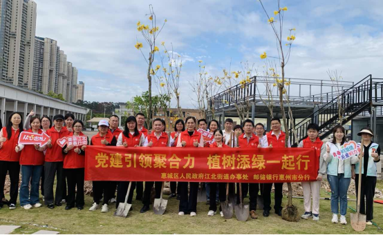 黨建引領聚合力,植樹添綠一起行——郵儲銀行惠州分行聯合惠城區人民政府江北街道辦事處開展主題植樹活動