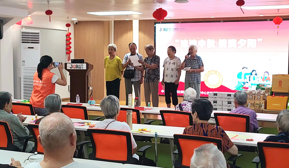 當日,帶著濃濃的關愛,惠州日報社新媒體政務服務中心黨支部和水口街道姚村村黨總支的十多名黨員為康養中心的老人們送上月餅、牛奶、蛋黃酥等中秋節禮物。老人們對黨員的到來表示熱烈歡迎,一首由九如康養中心的李泳軒、丘金貝等五位老人帶來的合唱《歌唱祖國》熱情洋溢,演唱者精神矍鑠、聲音洪亮,富有感情的音樂引來黨員和臺下老人家集體跟唱。一曲結束,丘大爺帶來自己填詞的獨唱《東江謠》,將活動氣氛推向另一個高潮。演唱結束后,黨員與老人們共同制作中秋小燈籠。期間,黨員與老人們一邊互相幫助,一邊親切交談,拉家常、問冷暖,詳細了解他們在這里的生活情況、身體健康狀況,并叮囑老人注意秋季天氣變化,好好保重身體。一個個靈巧可愛的小燈籠在歡聲笑語中新鮮“出爐”,老人們笑逐顏開,現場氣氛一片祥和,黨員和老人們的心也在這樣融洽的氛圍里不斷貼近。