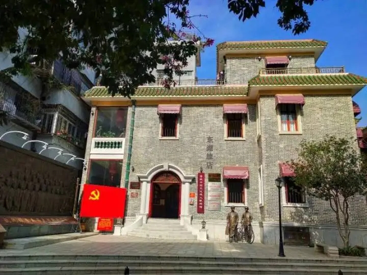 東湖旅店(香港文化名人大營救惠城接送站舊址),位于惠城區橋東街道上板塘70號,曾是秘密大營救的中轉站之一,茅盾、廖沫沙等100多人在它的庇護下沿江北上。現為磚石三層半中西式結構,被開辟為營救中國文化名人陳列館,于2019年1月底開門迎客,全面展陳秘密大營救歷史。