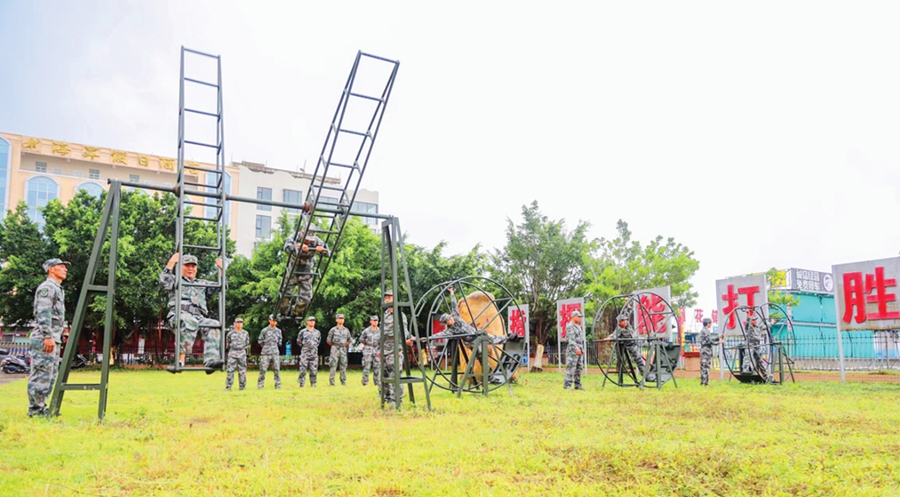 2013年,港口“英雄民兵連”承擔民兵分隊訓練試點任務,100余名參訓隊員斗暴雨、戰熱浪,訓練強度和難度不斷加碼。兩公里武裝泅渡中,每名隊員背負10多公斤武器裝備,全連用時不到42分鐘,最早上岸的隊員僅用了38分鐘。