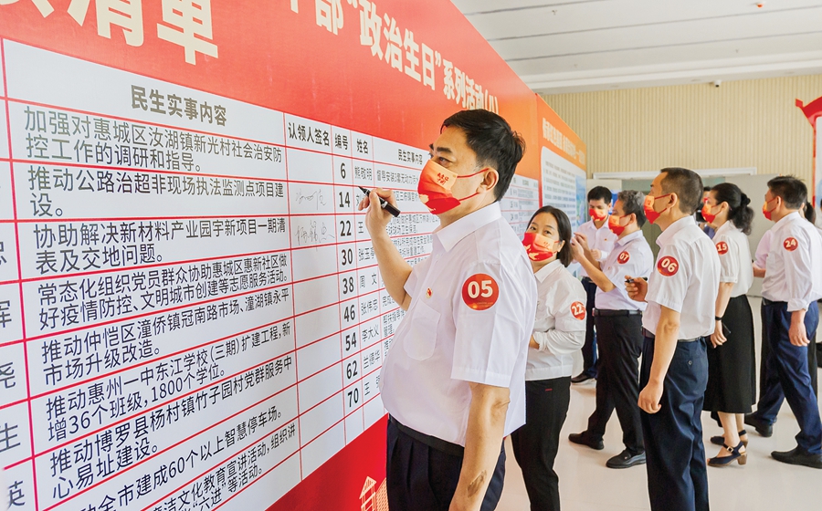過好“政治生日”,牢記初心使命。一年來,惠州把黨員過“政治生日”作為提升黨內政治生活質量的重要舉措,在市級層面開展“擔當作為踐初心 砥礪奮進創一流”黨員領導干部“政治生日”系列活動,通過每人認領一件民生實事等系列舉措,把過“政治生日”與推動中心工作、解決實際問題結合起來,推動黨員干部以實際行動踐行初心使命。同時,全市各地各部門也積極組織黨員集體過“政治生日”,以重溫入黨誓詞、分享入黨初心故事、警示教育等形式,引導廣大黨員加強黨性修養、筑牢信仰之基、補足精神之鈣、把穩思想之舵。