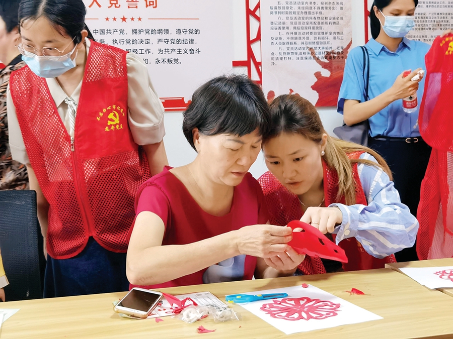 長者參加“巧手剪紙·樂享生活”志愿服務(wù)活動(dòng)。