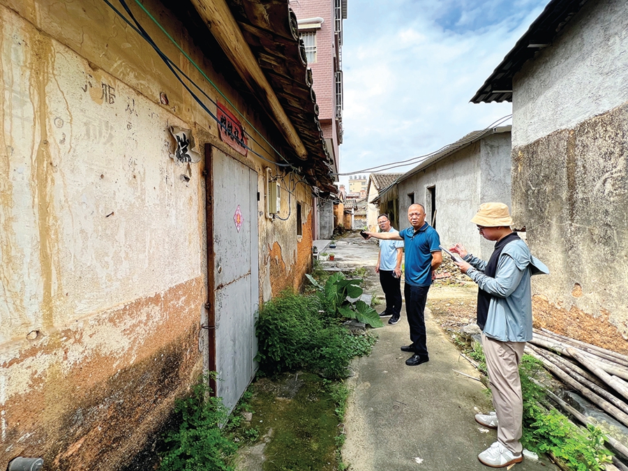 在黃春華(左二)的帶路下,惠陽區委黨史辦工作人員找到了黃世梅、黃開等革命先輩的舊居處,將豎起牌子,告知世人他們的革命故事。