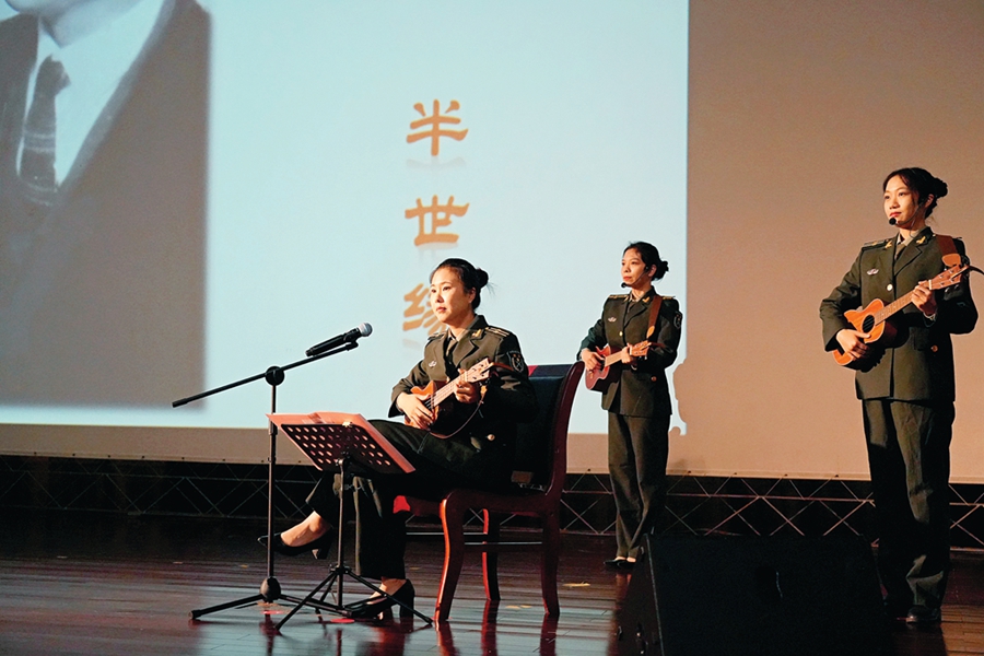 舞臺下,觀眾們聚精會神觀看,時而眼神欣喜,時而表情凝重、眉頭緊鎖,看到悲壯難過時,忍不住悄悄抹眼淚。彈唱中特別融入了當代青少年耳熟能詳的《孤勇者》《逆戰》等歌曲旋律,進行了歌詞改編。每當熟悉旋律響起時,學生們會跟著輕聲吟唱。