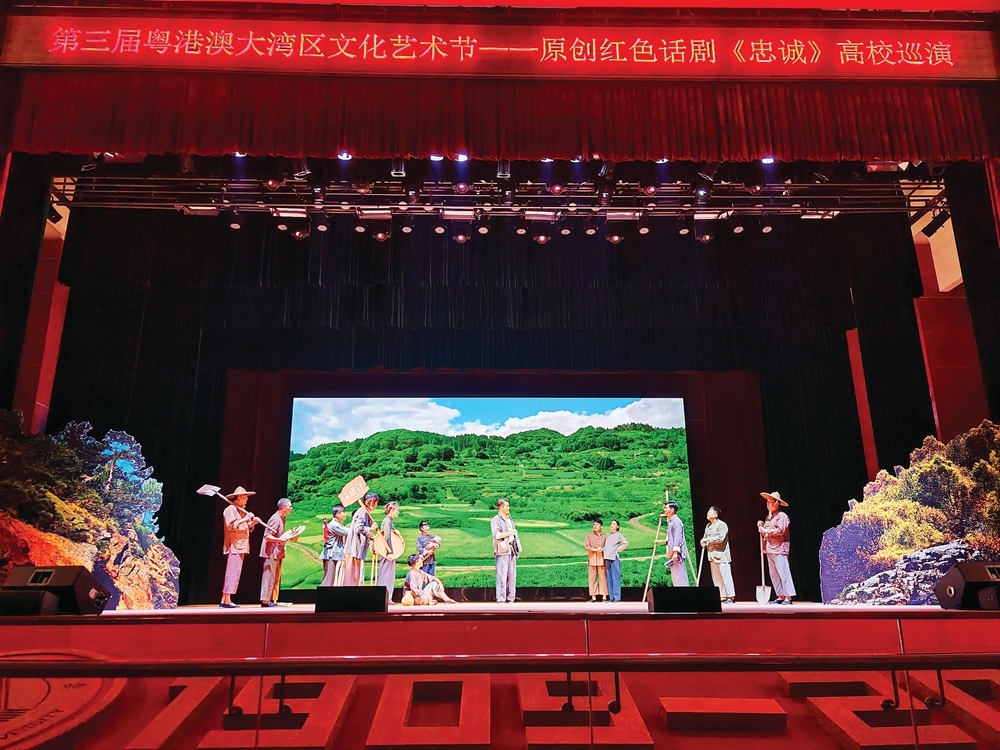 “看完內(nèi)心久久不能平靜,我被他們的革命精神深深感染了!”“整部話(huà)劇故事感強(qiáng),脈絡(luò)清晰,跌宕起伏,讓我有一種身臨其境的感覺(jué),仿佛回到了那個(gè)血雨腥風(fēng)的歲月。”9月24~27日,作為第三屆粵港澳大灣區(qū)文化藝術(shù)節(jié)系列活動(dòng)之一,惠州原創(chuàng)紅色話(huà)劇《忠誠(chéng)》先后走進(jìn)廣東工業(yè)大學(xué)、華南農(nóng)業(yè)大學(xué)、中山大學(xué)、華南理工大學(xué),用生動(dòng)的劇情、沉浸式的演繹為學(xué)子們送上一堂生動(dòng)的紅色教育課。