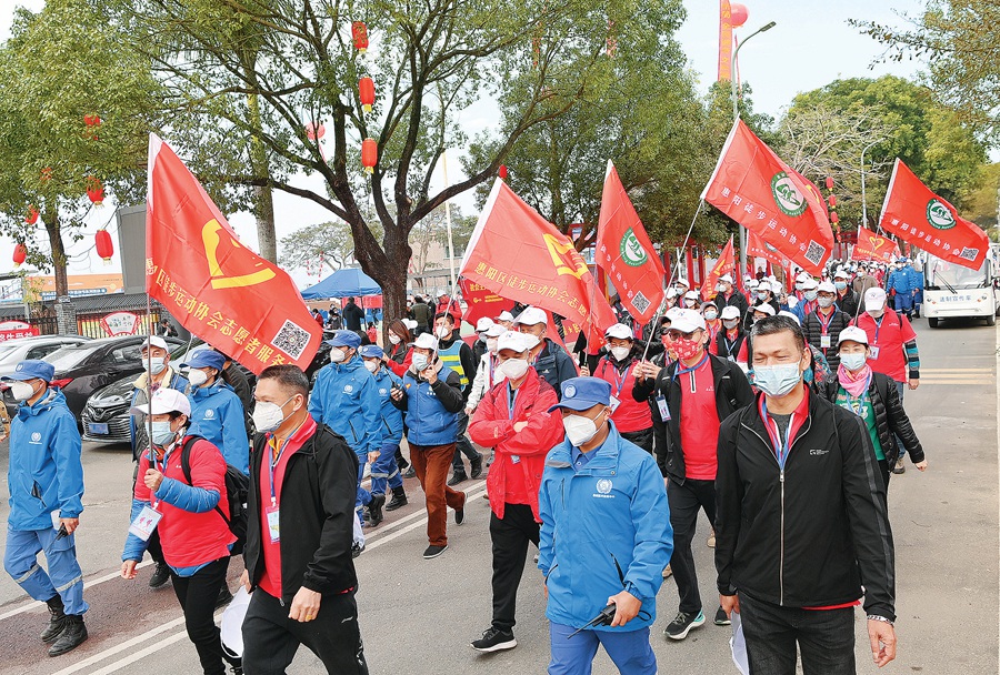 元旦當日上午,天氣晴好,陽光明媚。位于惠陽區平潭鎮的新圩村文化廣場內人聲鼎沸,彩旗飄飄,數百名徒步愛好者們整裝待發,準備以健康徒步的方式迎接新年的到來。
