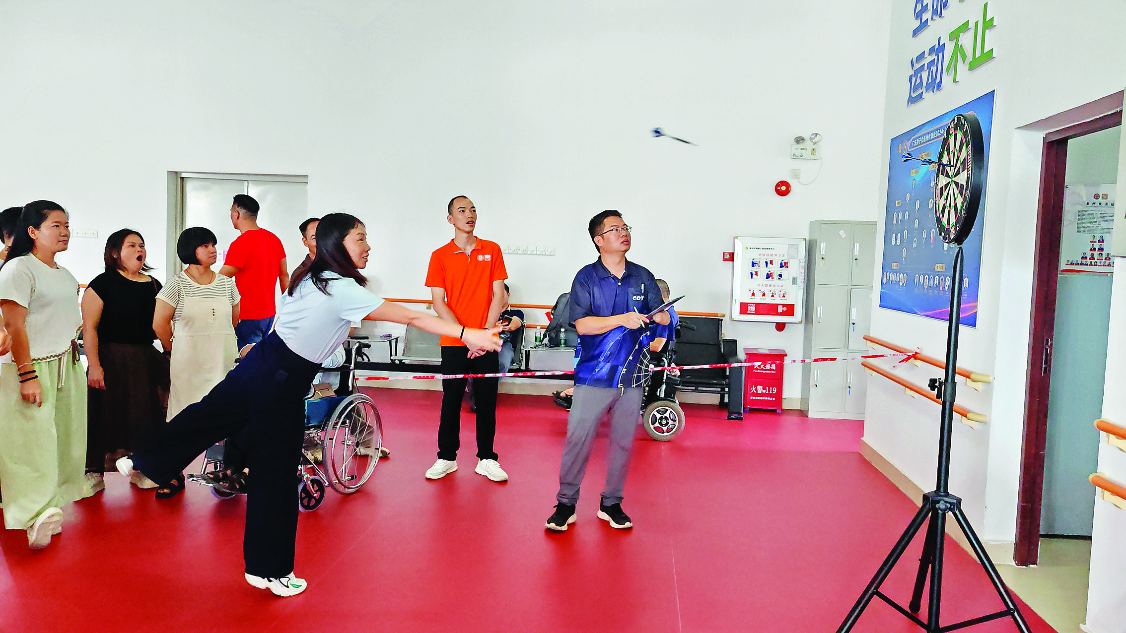 8月17日上午,惠州市殘疾人綜合服務中心文體樓內氣氛熱烈,由市殘聯、市肢協主辦的“追夢大灣區,出彩人生路”趣味飛鏢比賽暨景泰藍工藝培訓活動在這里舉行,來自我市各縣(區)的數十名殘疾人齊聚一堂,以鏢會友、以賽傳情,在方寸靶盤間展現了“自尊、自信、自強、自立”的動人風采。