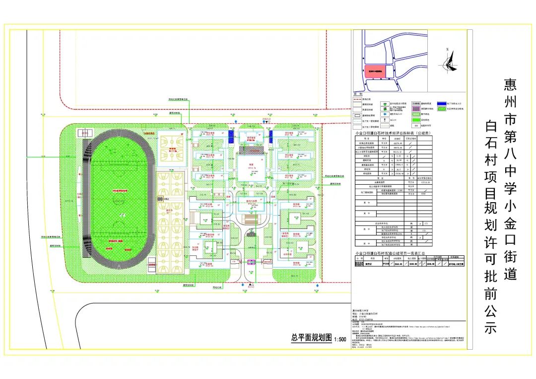 據惠州市惠城區自然資源局發布的《惠城區教育局(惠州市第八中學)建設項目規劃許可批前公示》顯示,惠州市第八中學高中部項目位于小金口街道白石村。
