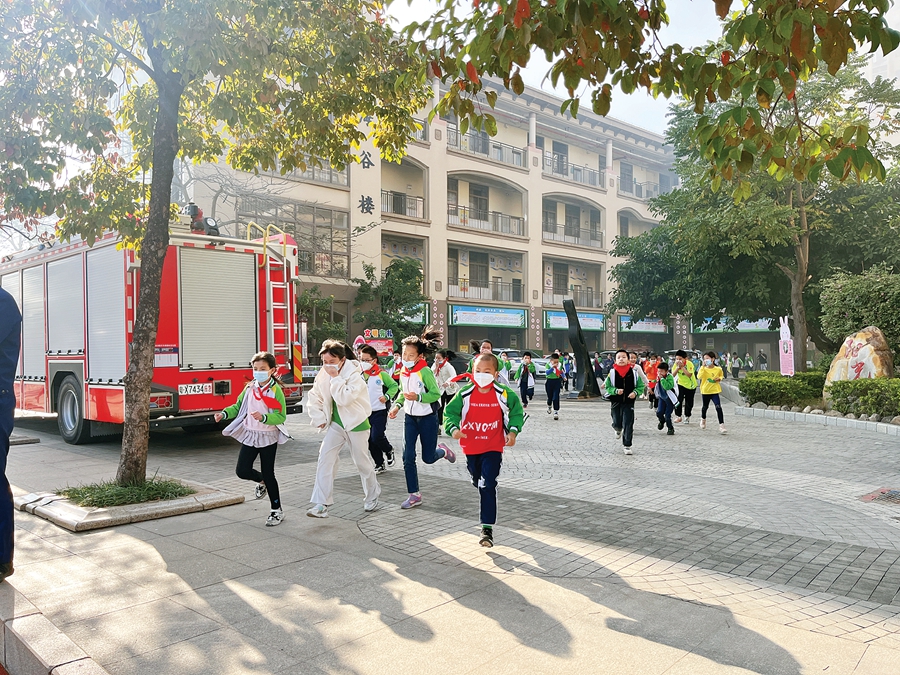 2月15日下午4時,隨著急促的警報聲拉響,華中師范大學附屬惠州大亞灣小學(以下簡稱“大亞灣華師附小”)師生紛紛捂著口鼻快速從教室轉移到操場。這是大亞灣消防組織該校開展消防安全疏散演練的一幕。新學期伊始,大亞灣區消防救援大隊先后走進澳頭東升小學、大亞灣第一中學高中部、大亞灣華師附小,組織師生開展“開學第一課”系列活動,以“實現教育一個孩子,帶動一個家庭”為目的,讓學生深入學習消防安全知識和防護、避險知識,并將消防知識帶回家庭。