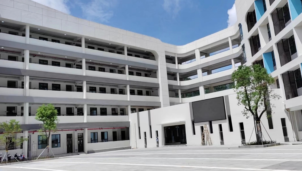學校占地面積約3.3萬平方米,總建筑面積約3.2萬平方米,辦學規模36個教學班。校內由6棟教學樓、一棟雙層體育館組成,各個教學樓功能分明,分布小學部和初中部、行政樓、實驗樓等。學校建筑以灰白色為主色調,不同功能的教學樓,點綴橙、藍、綠等不同顏色。
