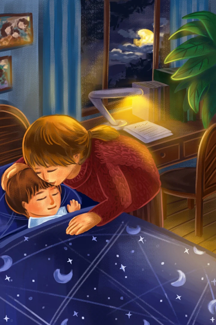 我摸著他的頭說:“爸爸永遠(yuǎn)都不會(huì)打你。”