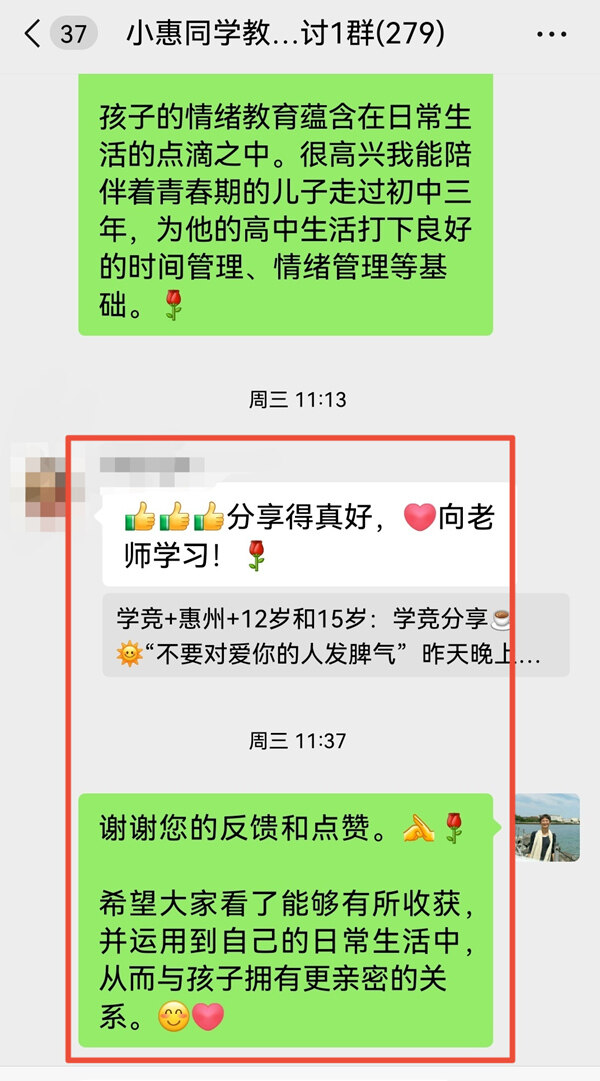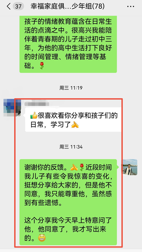 孩子的情緒教育蘊含在日常生活的點滴之中。很高興我能陪伴青春期的兒子走過初中三年,為他的高中生活打下良好的時間管理、情緒管理等基礎。