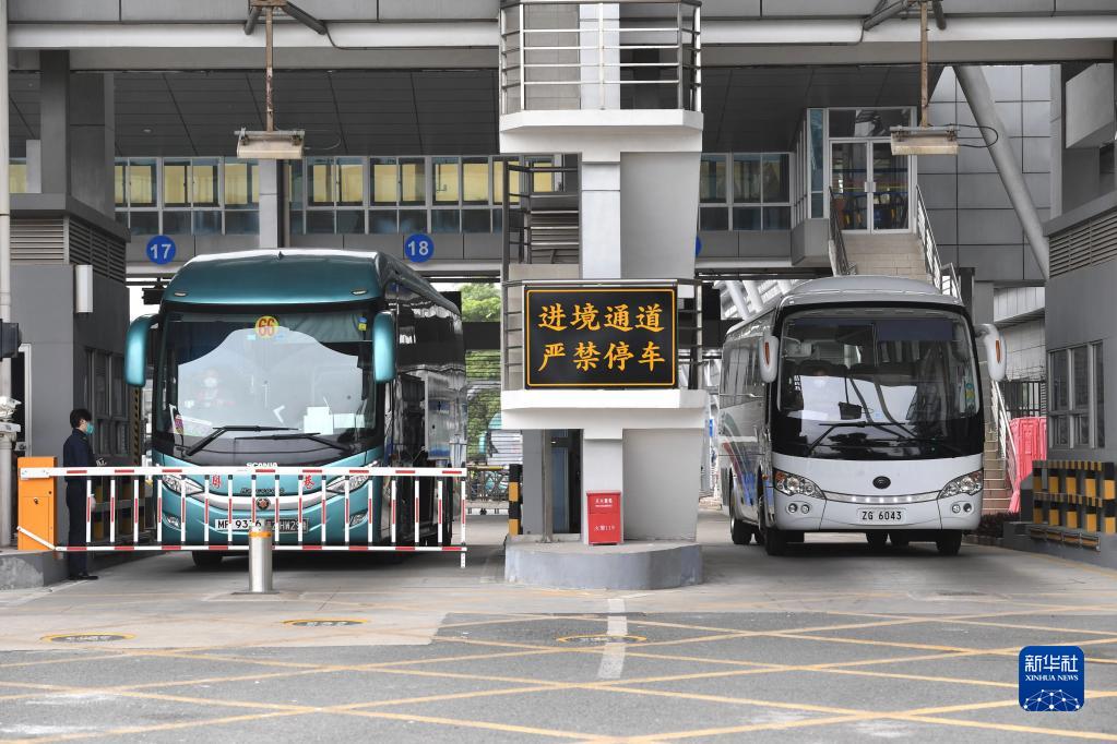 1月8日,跨境大巴經深圳灣口岸入境。新華社記者 毛思倩 攝
