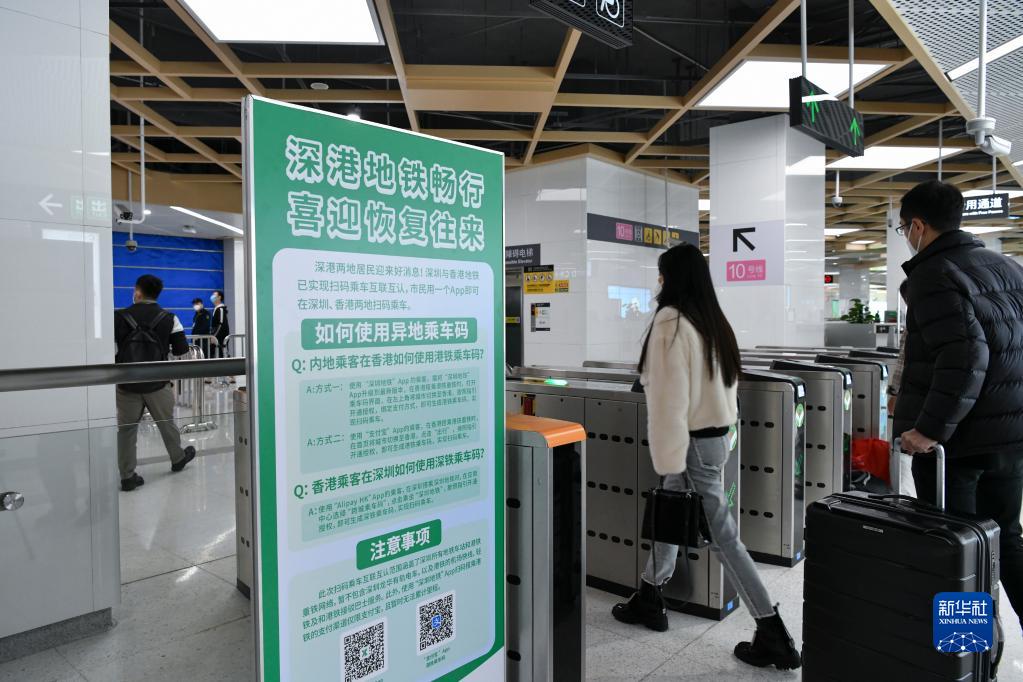 1月8日,乘客在深圳福田口岸地鐵站進站。當日,深圳、香港地鐵APP掃碼乘車啟用互聯互認功能。新華社記者 梁旭 攝