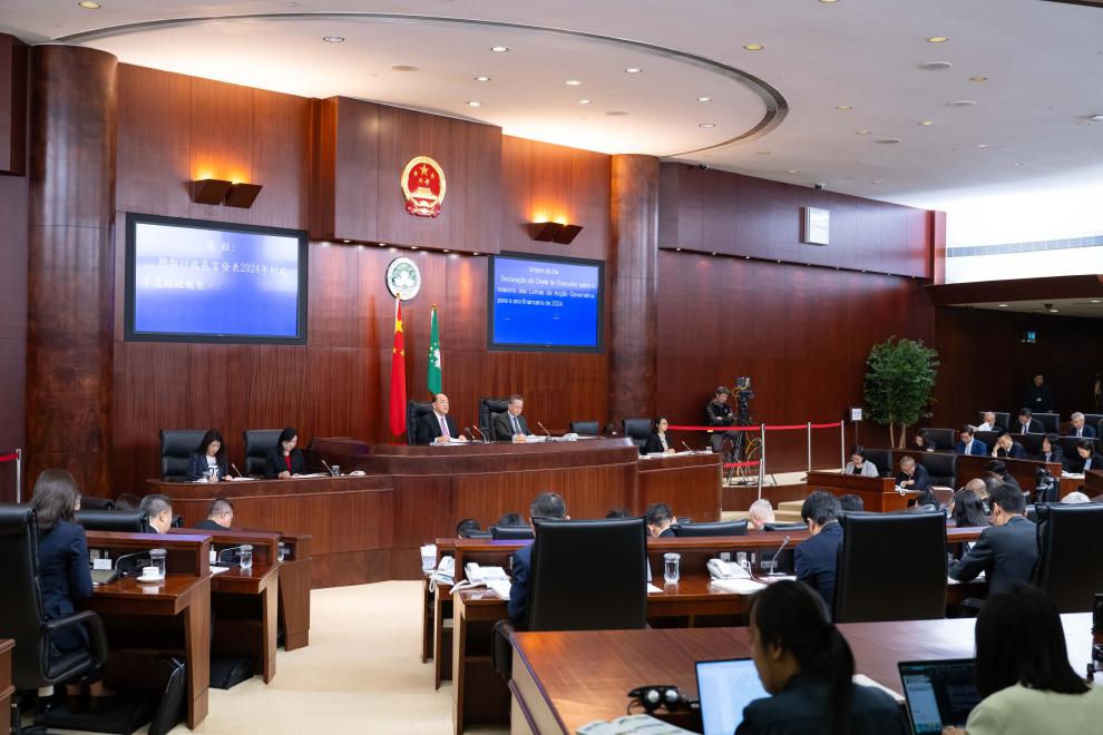 11月14日,澳門特區行政長官賀一誠在特區立法會發表2024年財政年度施政報告,題為《鞏固提升,多元發展》。新華社記者 張金加 攝