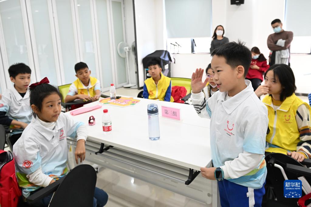 11月18日,在深圳羅湖區婦女兒童活動中心,深港兒童議事會的兒童議事員們分享在外實踐時遇到的對兒童友好和不友好的地方。新華社記者毛思倩攝