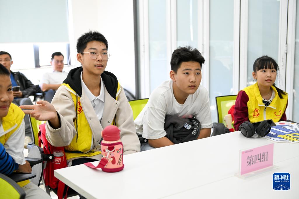 11月18日,在深圳羅湖區羅湖美術館,深港兒童議事會的兒童議事員朱梓棋(左二)帶領組員梳理意見。新華社記者毛思倩攝