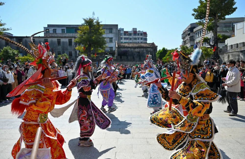 2023年1月29日(農(nóng)歷正月初八),汕頭市濠門英歌隊(duì)在達(dá)濠古城進(jìn)行英歌表演。新華社發(fā)