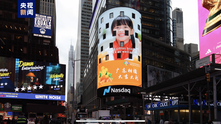 11月底,廣東柑橘集體亮相納斯達克大屏,閃耀美國時代廣場。廣東特色優勢農業品牌宣傳推介暨品牌運營項目正式開啟國際化之旅。