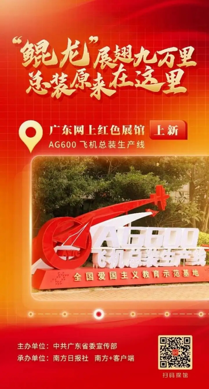 由中共廣東省委宣傳部主辦,南方日報、南方+承辦的廣東網上紅色展館,今天新上線兩個展館:鴉片戰爭博物館(虎門炮臺)、航空工業AG600飛機總裝生產線。