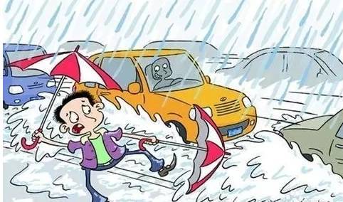 六,積水深要繞行,行人要注意道路上的下水道和井蓋,車(chē)輛要避免駛?cè)氲屯菀诐程帯?/p>