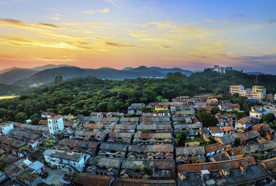 沿著縱隊路前進,穿梭于游擊巷間,看著成片低矮的青瓦泥磚屋與墻面上繪寫的“東江縱隊之歌”,濃郁的革命氣息撲面而來。這是位于東莞市大嶺山鎮大王嶺村的大嶺山抗日根據地舊址。廣東東江縱隊紀念館、大嶺山抗日根據地舊址講解員陳夢,在此向采訪團介紹廣東人民抗日游擊隊第三大隊開辟大嶺山抗日根據地的歷史。