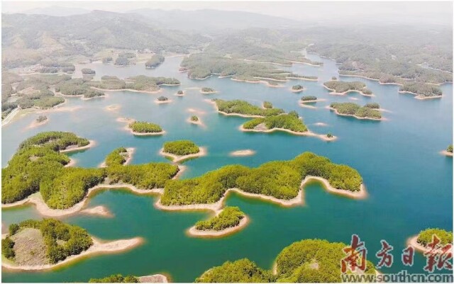 廣東孔江國家濕地公園位于北江源頭區,園內點綴著眾多島嶼,形成了山外有山、山重水復、山環水抱的百島湖奇景。南方日報記者 張令 通訊員 林蔭 攝