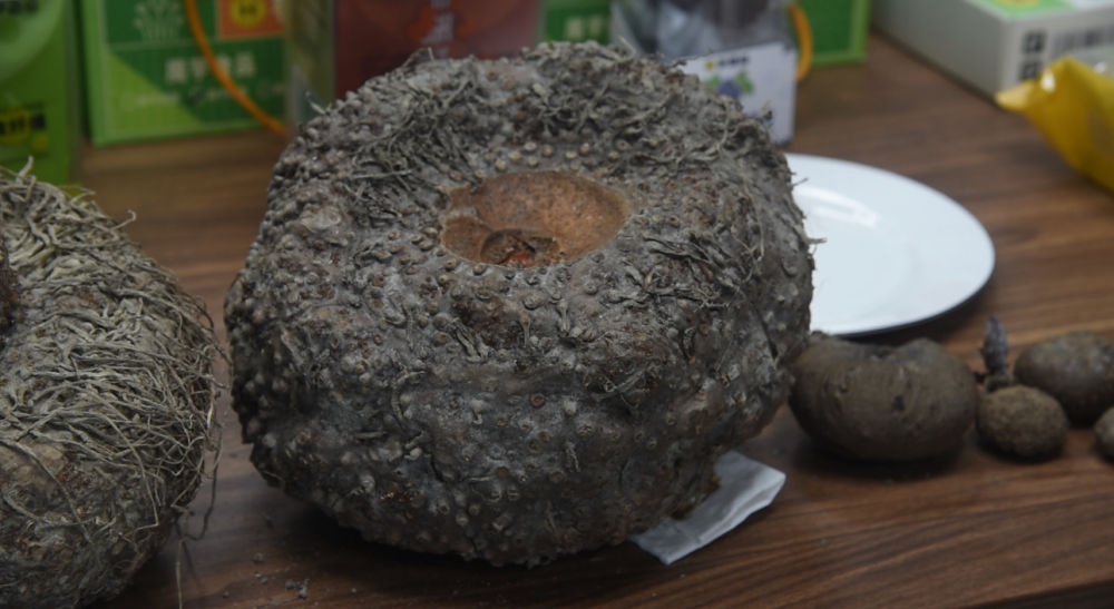 在水頭鎮農業種植基地內,村民們正撥開田埂上的作物莖稈,用鐵鏟將地里直徑達20厘米的褐色“巨無霸”農作物緩緩挖出,這就是水頭鎮的新“致富果”——魔芋。